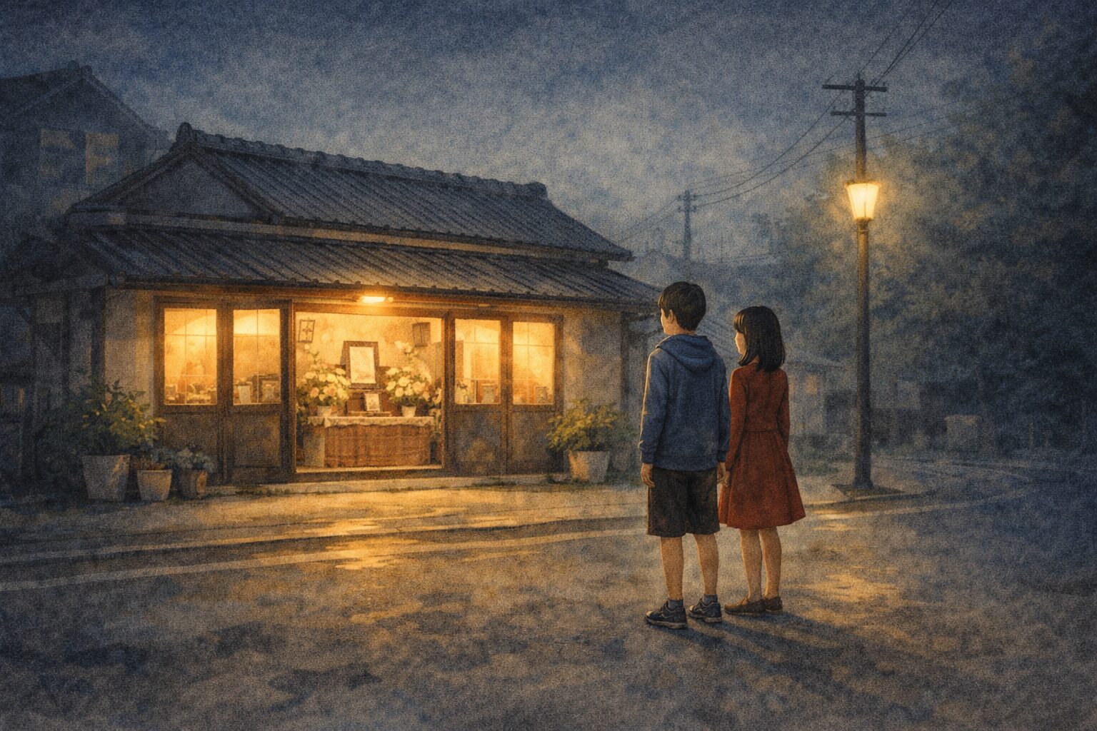 困り果てて辺りを見回したとき、目の前に葬儀会館の明かりが見えた。